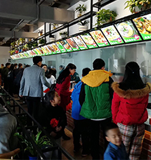連鎖小吃店,現(xiàn)場(chǎng)人氣爆棚,使用了多環(huán)牌無(wú)無(wú)煙管油煙機(jī)的商